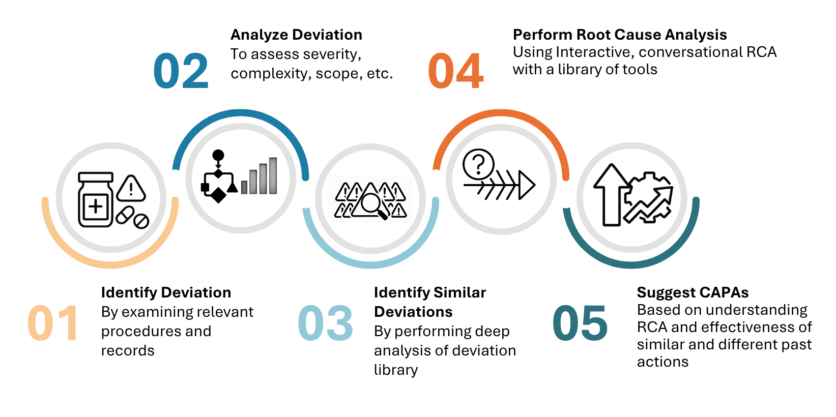 Our AI-driven deviation analysis and CAPA management solution accelerates compliance, delivers consistent investigation quality, and strengthens audit readiness