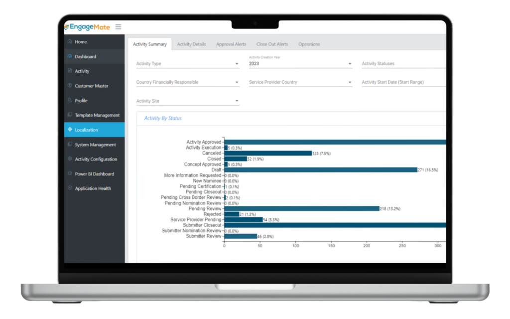 EngageMate provides customizable dashboards that pull information from the system in real-time to provide metrics for activities, service providers used, approvals, and closeout alerts. This gives companies the insights they need to make better decisions about their engagements.