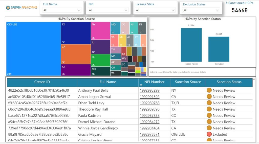 Our AI-powered sanctions and exclusion data lake, your comprehensive solution for navigating the complexities of physician sanctions. By consolidating data from state medical boards and the OIG, we offer a centralized hub for informed decision-making.